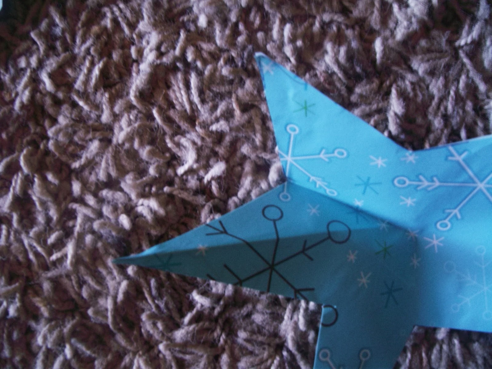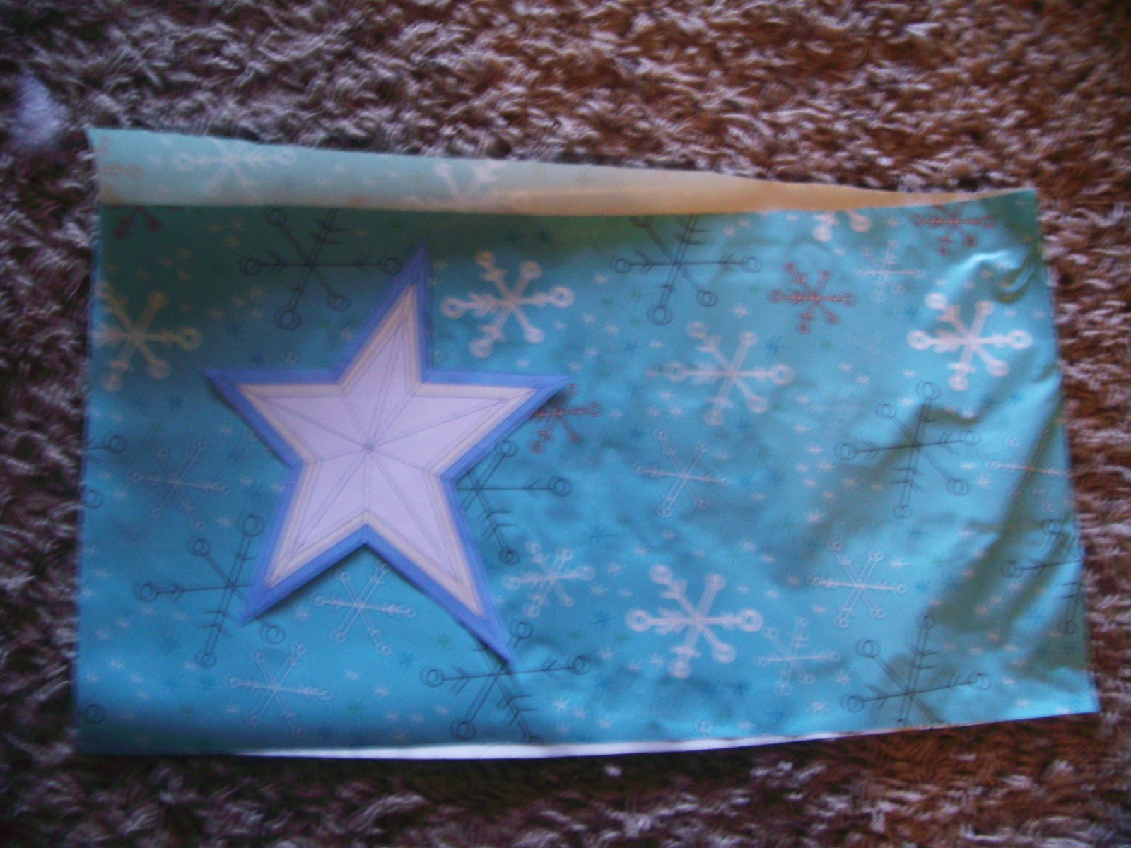 2. I glued my wrapping paper together, making it double sided and a bit stronger. Here I’m just re-gluing the star points together.