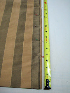4. Mark your stithing lines with pins at each end of the blind. Starting 4 1/2″ from the bottom, place 1st pin. Then place pins every 2 1/2″.