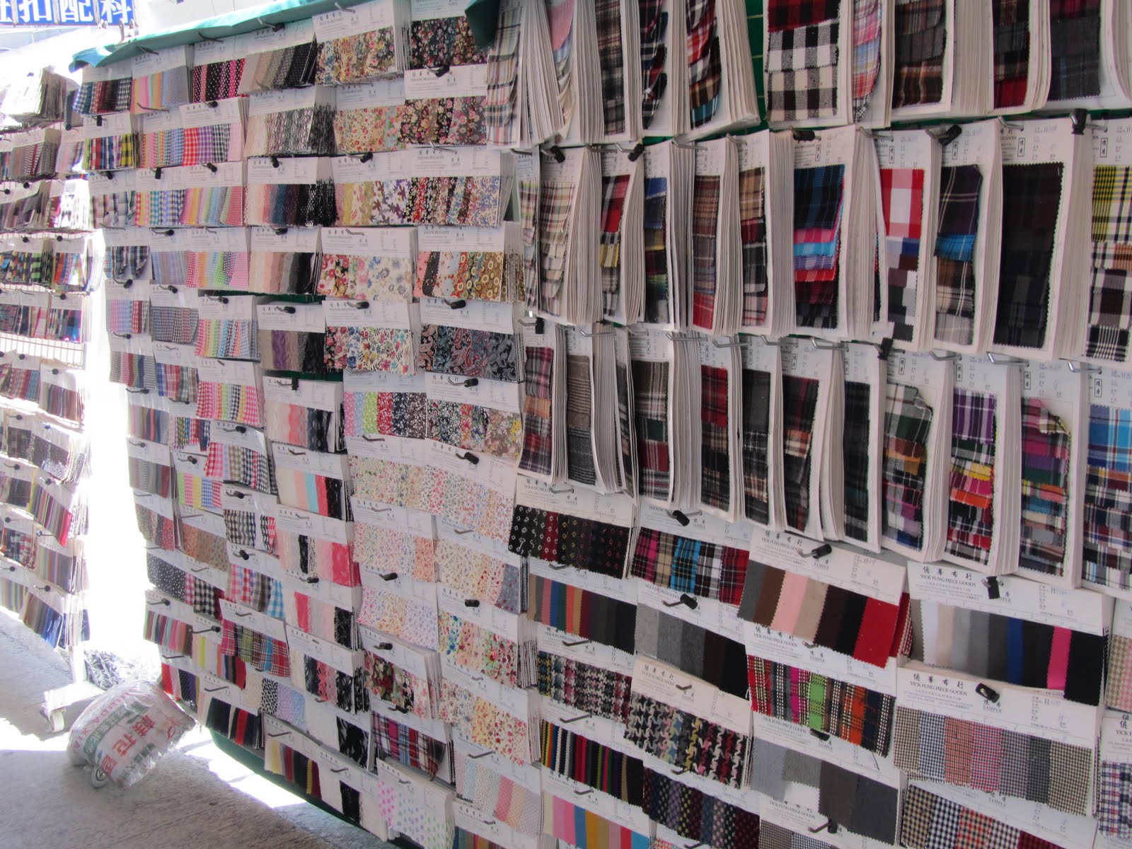 Fabric shopping – Luckily I found a blog before I left that talked about where to buy fabric in Hong Kong. This area, near the Sham Shui Po Station, is quite a well-kept secret. To get there, you take the red line of the MTR. From central, it was the seventh stop. Use the Apliu Street exit and turn left (a mall called Dragon Center will be on your right). Walk 1 block and you will come upon an area around 4 blocks x 4 blocks that is filled with wholesale fabric and notion shops. It is amazing! All the shops have cards on the walls with samples on them, but there is very little English here. If you see something you like, you can take the card to the sales person, who will tell you the price. They will give you one price for 3 yards or less, and a lower price for wholesale (usually 50 yd min). You can place an order (a deposit is required) and pick up the fabric in 1-3 days. Right in the middle of this area, on Ki Lung Street, I discovered several tables set up along the road, with bolts of fabric that you could buy yardage from (cash only). I found some beautiful linens, but most of the fabrics were polyester and cotton.