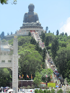 Lantau Island – Visiting the Big Buddha on Lantau Island is another popular tourist attraction, but we really enjoyed it. Part of the fun is getting to ride a gondola across the ocean and up a mountain! The views are spectacular. The buddha statue really is huge, and before you get to it, you walk thru a little “village” (actually just shops and restaurants, we had a snack at Starbucks!). You soon learn that there are shops everywhere in Hong Kong. Therese bought a beautiful set of chopsticks – the nicest we saw anywhere.