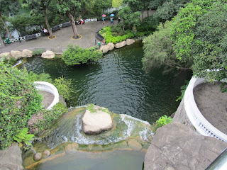 Hong Kong Park – Located in Central on the Island. We spent around an hour there, strolling around the man-made lake filled with koi and turtles, and admiring the waterfall. We loved the aviary which is huge – it is a screened-in outdoor area filled with all kinds of birds. There was also a conservatory with different kinds of plants including many species of orchids and cacti.