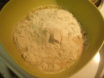 2. Add 1 tbsp olive oil. Then add all of the flour. Stir until it’s all combined.