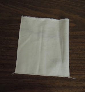 I wanted my finished bag to be around 7″ wide x 8″ tall, so I cut a piece of fabric (I used hemp/cotton muslin) 15″ x 8″. I cut a piece of hemp string about 25″ long, folded it in half, and stitched it to 1 side of the fabric, 2″ down from the top.