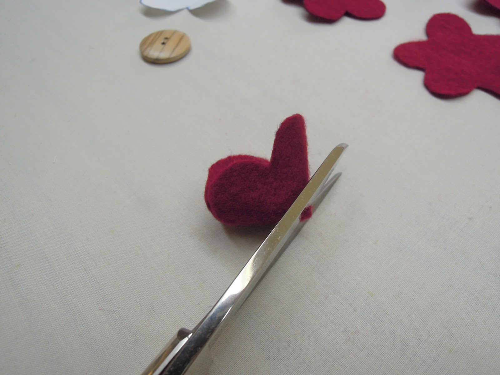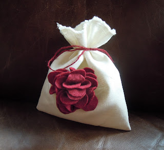 Because I sew every day, sometimes I like finding a project that requires no sewing! Fabric flowers are so popular this year. I had been wanting to make some for quite awhile, but never seemed to have the time. Well, I finally got around to it last week. I decided they would make great gifts for all my friends. I scrounged through my bins and found a big piece of red felt, and a bag of leather scraps that I’ve been holding onto for many, many years. The instructions are simple – you’ve got to try it! For these flowers a stiff fabric works best, and if it doesn’t fray, that’s even better.