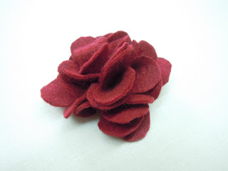 Add the last petals – I have used only 6 altogether in this one, because the felt is quite thick. Glue a pin on the back and you are done!