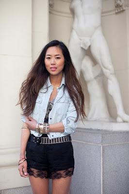 I love the black accents on this nude blouse. sourceunknown/Tumblr
