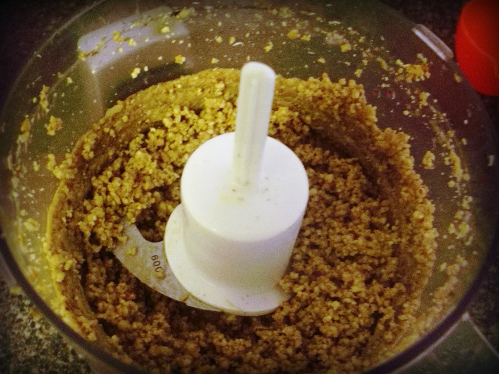 Add all of the ingredients to your food processor and blend! Just keep blending until you get the consistency you want. You can stop a bit early like I did or keep going to get it super creamy.