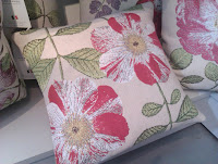 I fell in love with these beautiful pillows made with upholstery weight fabric, featuring embroidered designs in bold colours. Cat and dog prints were very popular too!
