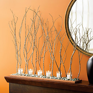 Tiny Prints blog shared this picture and I think it would make a great DIY project! There are endless ways in which you could arrange the branches and candles. Branches like those pictured above may be a bit tall for on your table but would work nicely on a side or corner table.