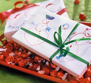 Glue some mettalic ric rac or ribbon to a plain box for instant Christmas sparkle!