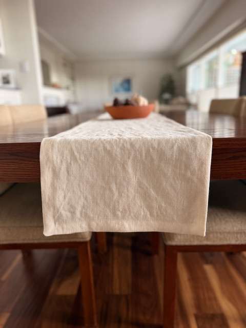 Each tablerunner is carefully crafted from 100% hemp fabric – a sustainable, durable textile that is easy to care for and good for the planet. Perfect for everyday dining or special gatherings, the neutral tone of this sustainable table runner makes it easy to pair with any style – from coastal to modern farmhouse.