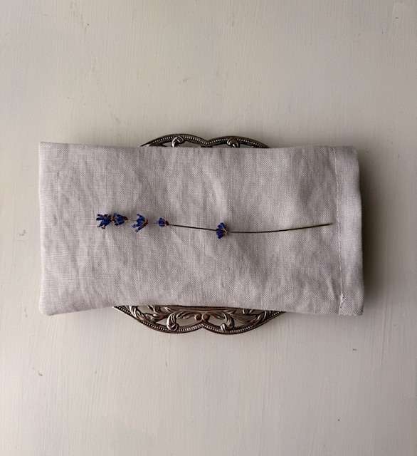 The organic cotton pillow is filled with flax seeds and dried lavender from my garden.