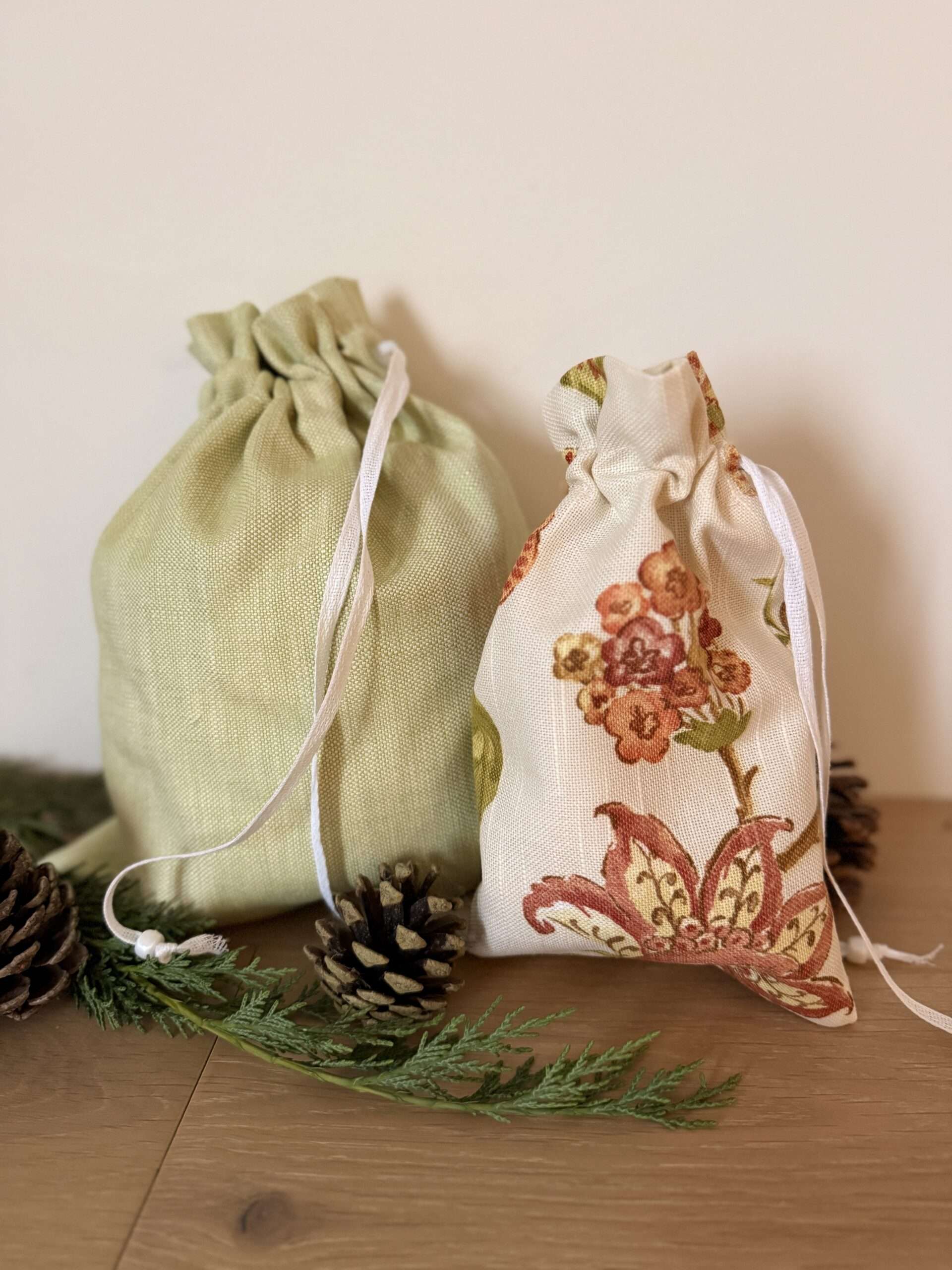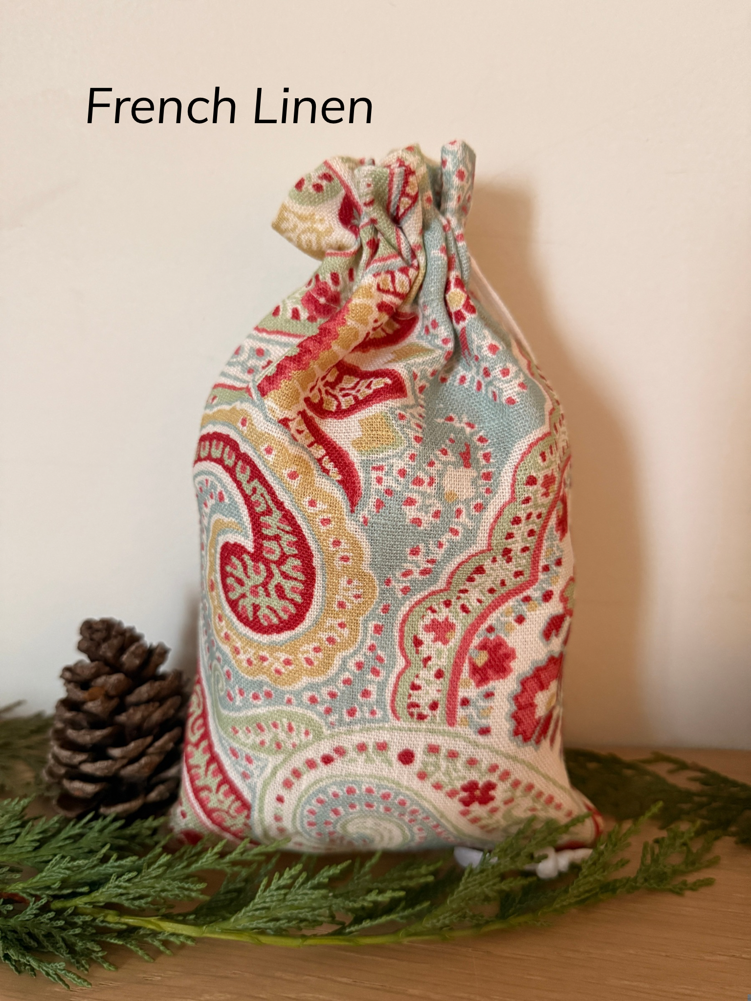 Hand-crafted in our studio, these eco-friendly, fabric gift bags can be used over and over.