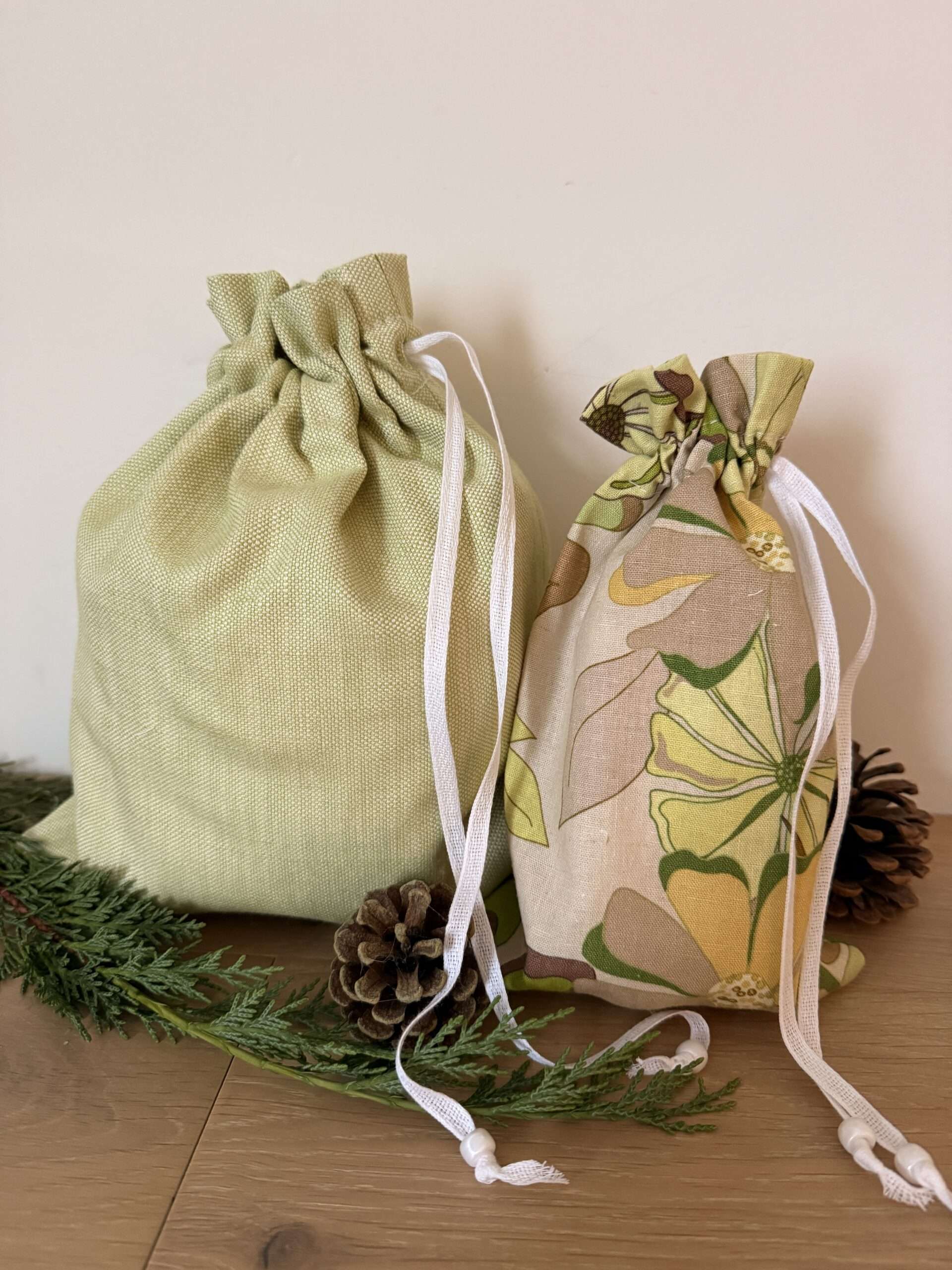Made from our linen, organic cotton and hemp fabrics, these drawstring bags are strong and washable.