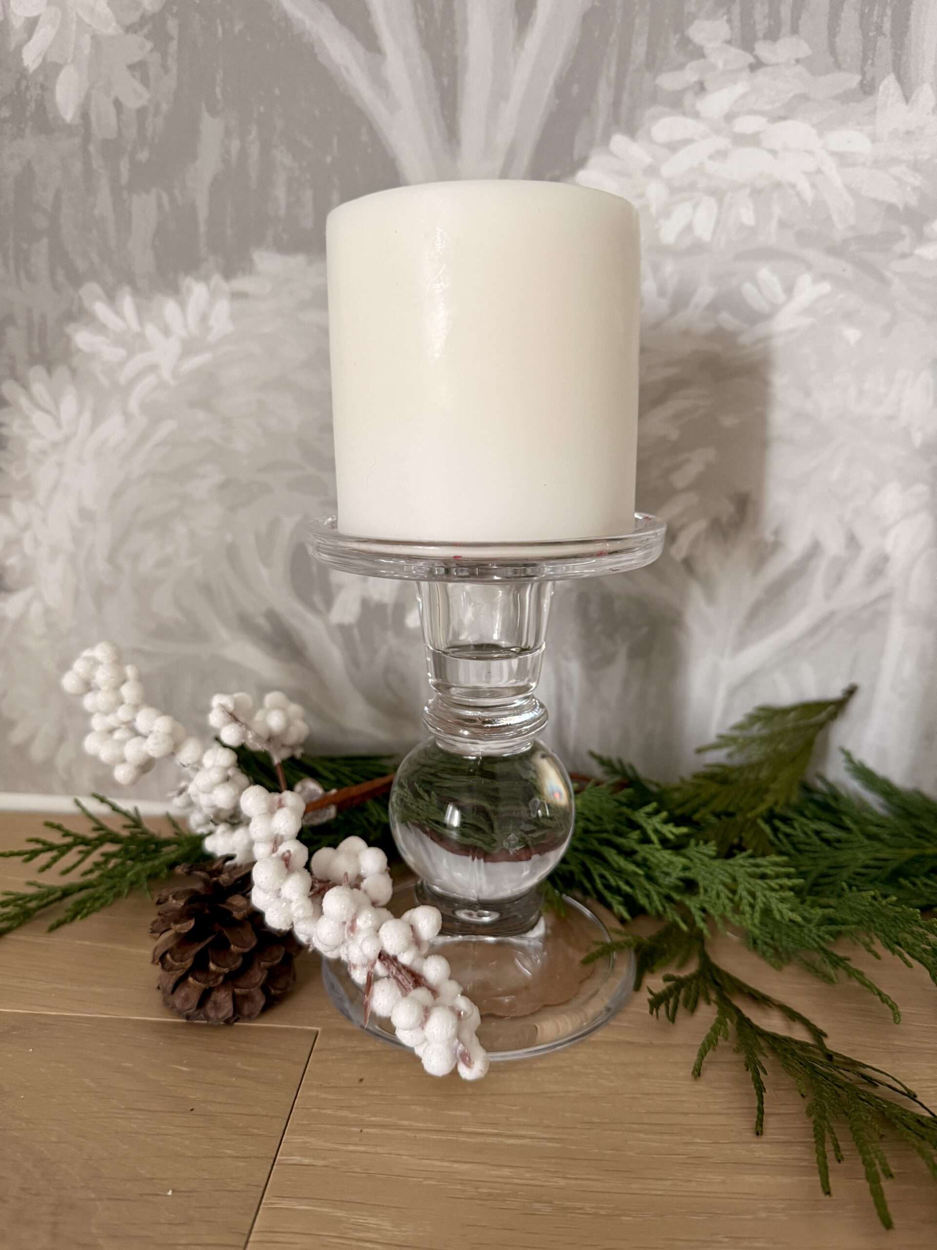Add a touch of quiet elegance to your decor with this clear glass vintage candle holder for pillar candles. Its clean, simple design catches the light beautifully, creating a soft, sparkling glow when a pillar candle is lit. Perfect on a holiday mantel, bedside table, or part of a seasonal display. A lovely addition to your collection or a thoughtful gift for someone who appreciates timeless decor.